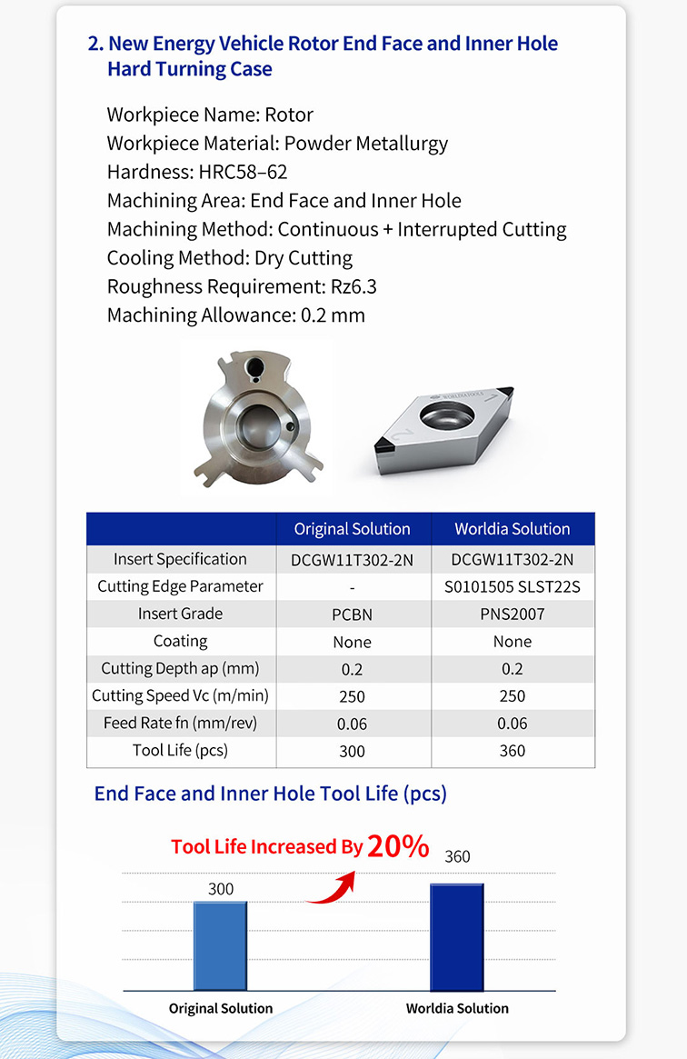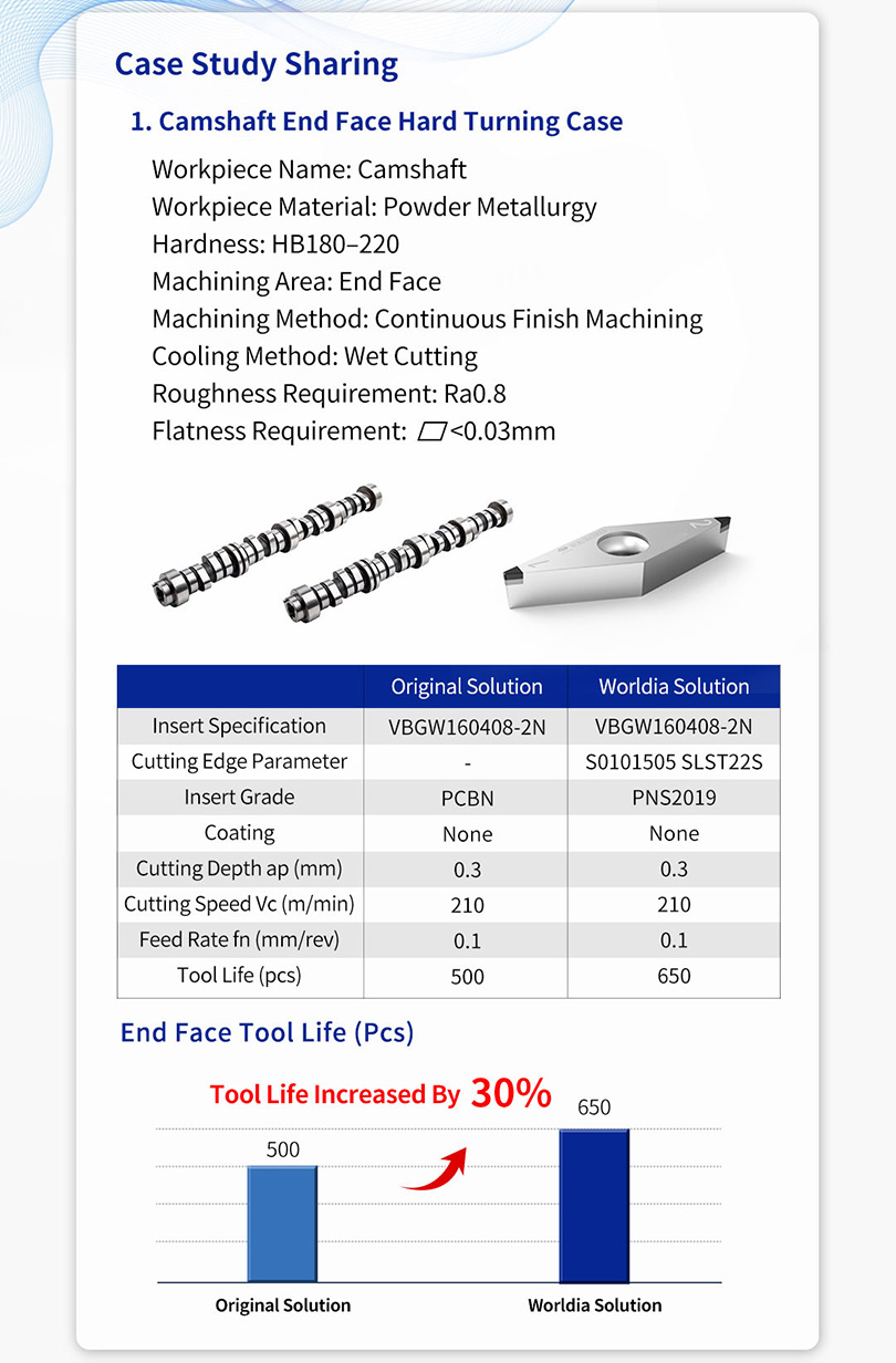 @Worldia’s customized PCBN inserts are designed based on the specific machining characteristics and working conditions of customers’ powder metallurgy components. They feature optimized tool grade, specially designed cutting edge parameters, and advanced coating technologies to significantly extend tool life and reduce machining costs.